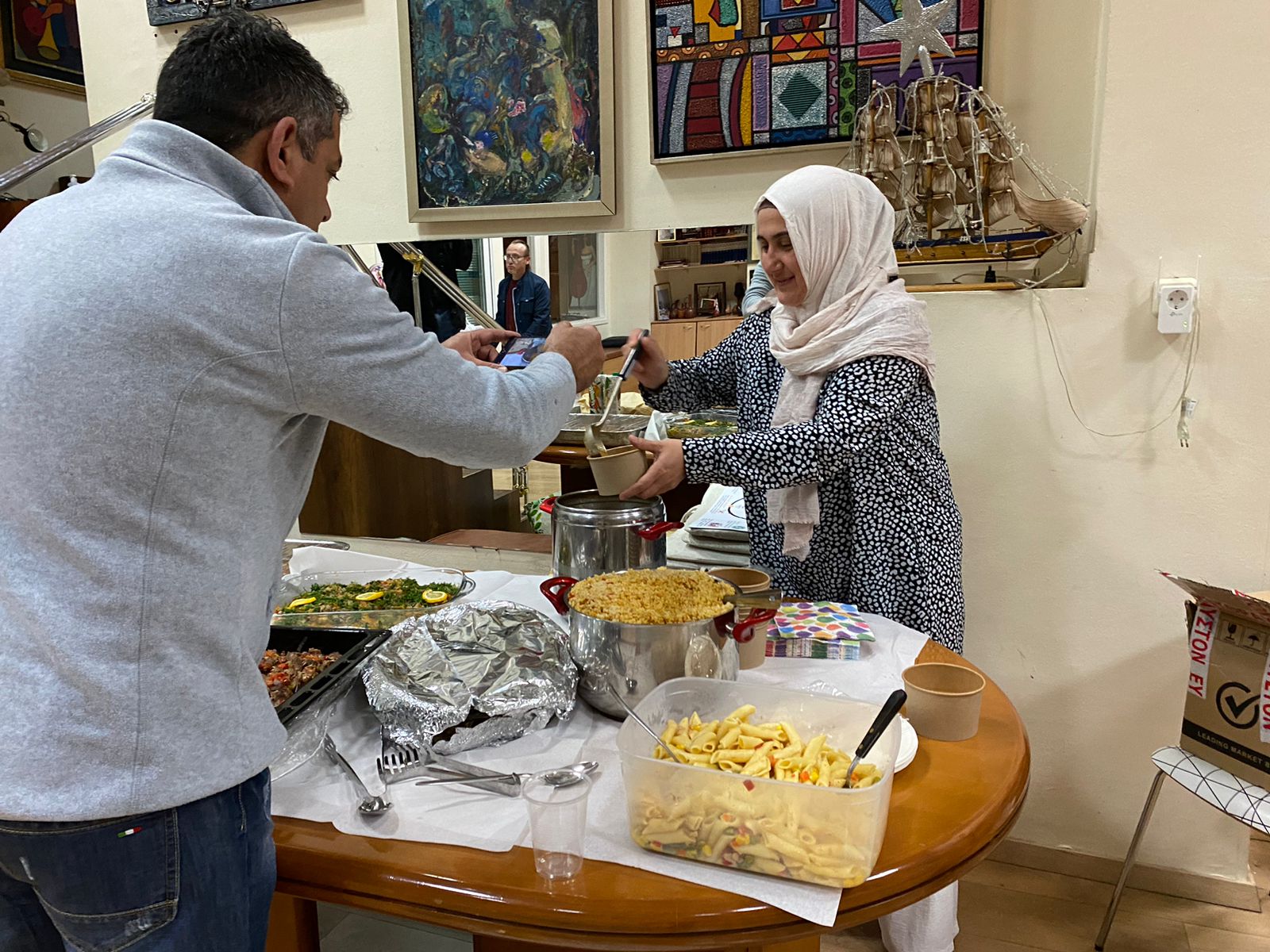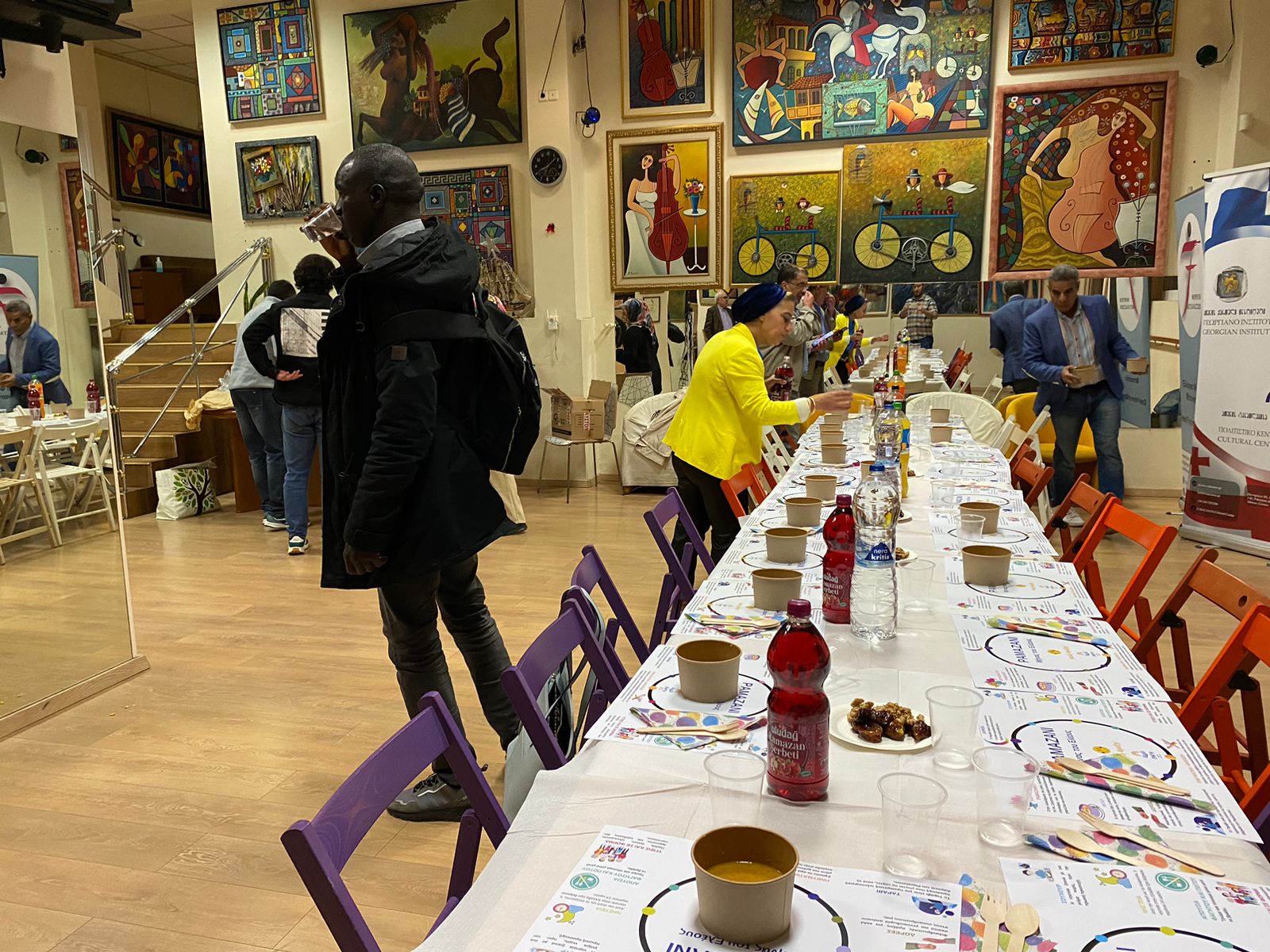 Our Syrian, Egypt, Afghanistan, Pakistan, Sudan, Senegal, Georgian and Ukrainian brothers attended the fast-breaking dinner organized by Pigi Koinsep, hosted by the Greek Forum Migrants association. The participants said, “We missed this brotherhood painting very much”.